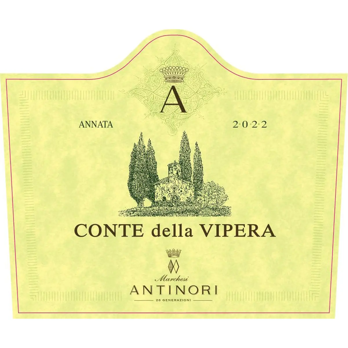 Dados Históricos: Os vinhedos selecionados para o Conte della Vipera estão localizados a uma altitude entre 825 e 1050 pés (250-350 metros) acima do nível do mar em solos ricos em fósseis marinhos. O vinho leva o nome dos primeiros proprietários do Castello della Sala, com seu rótulo mostrando a 13ª Capela de São João.