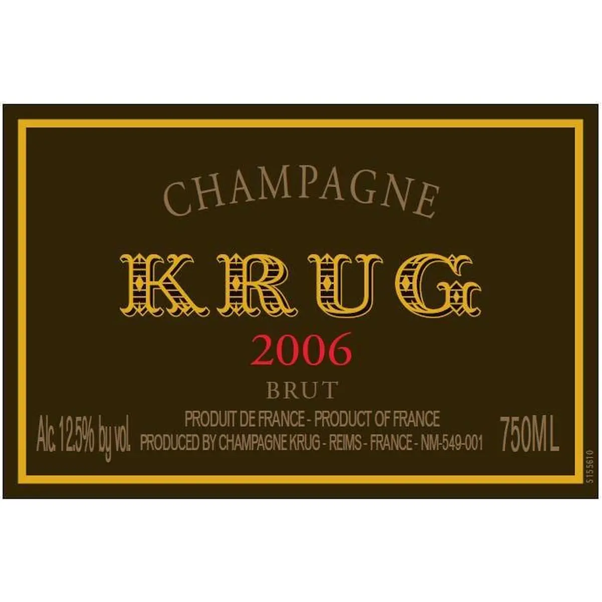- Krug 2006 revela a surpreendente história de um clima caprichoso com resultados extraordinários. Este Champagne acaricia o paladar enquanto se expande até um final longo e elegante que completa a experiência.
