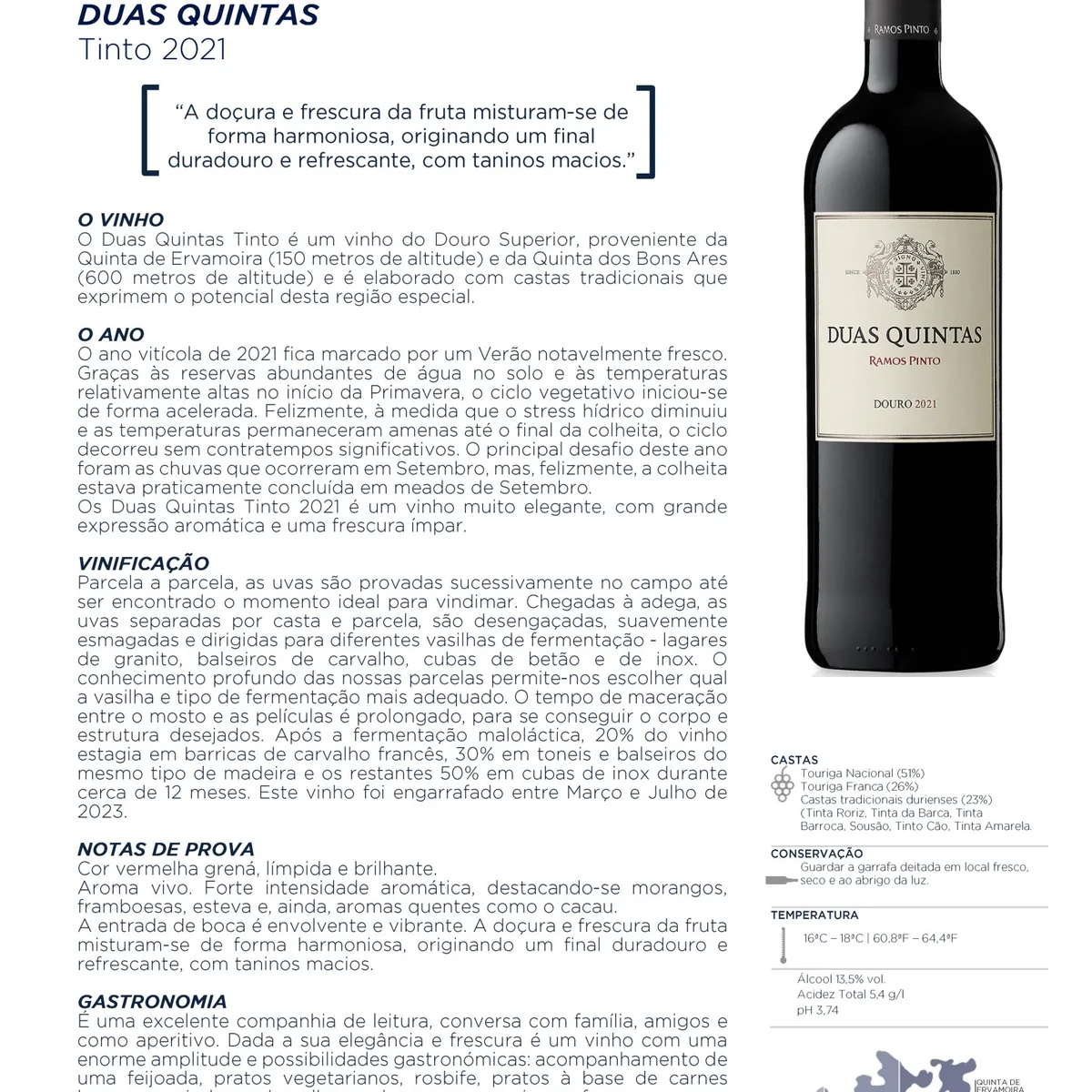 Harmonização para Duas Quintas Tinto 2020: