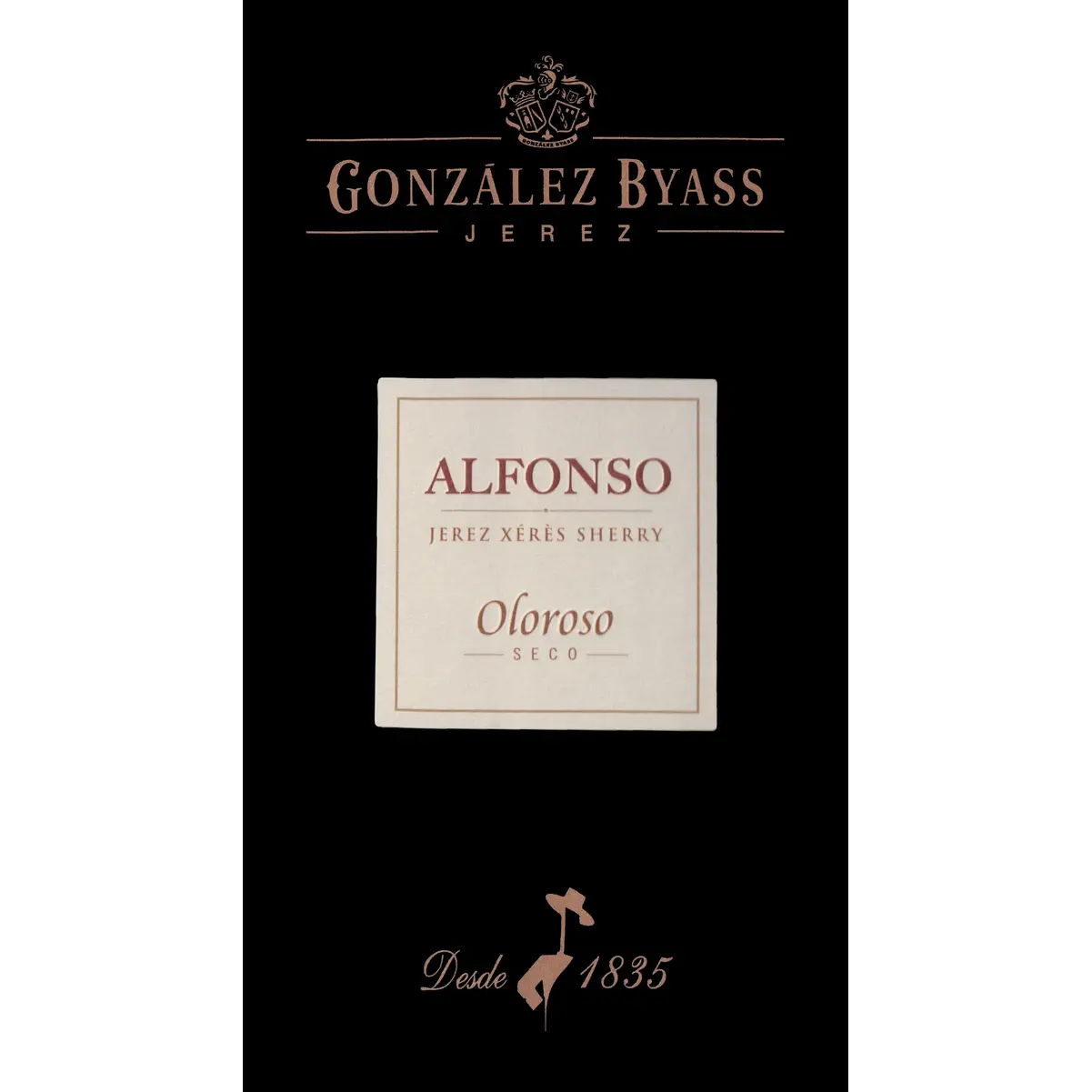 Vinificação: González Byass Alfonso Oloroso Seco é elaborado a partir da casta Palomino Fino, proveniente de vinhedos próprios. Após uma prensagem suave, o mosto de corrida livre (mosto yema) fermenta, classifica-se e fortifica-se a 18% vol. O vinho entra no sistema "solera", onde amadurece por cerca de oito anos em barricas de carvalho americano, permitindo uma oxidação completa e o desenvolvimento de seus aromas distintos.