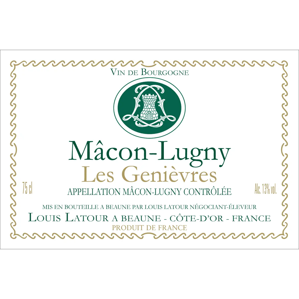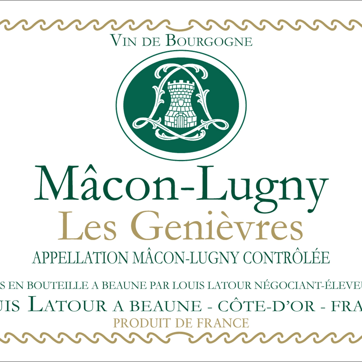 A vila de Lugny, no alto sul da região de Mâcon, é famosa por seus vinhos brancos que tornaram Mâcon conhecida. Lugny, com seus solos calcários e clima quente, produz os vinhos brancos mais desejados da região. O vinhedo "Les Genièvres" é um dos melhores. Maison Louis Latour seleciona as melhores uvas dessa vila, que, graças ao seu terroir, foi a única plantada com Chardonnay há 30 anos.