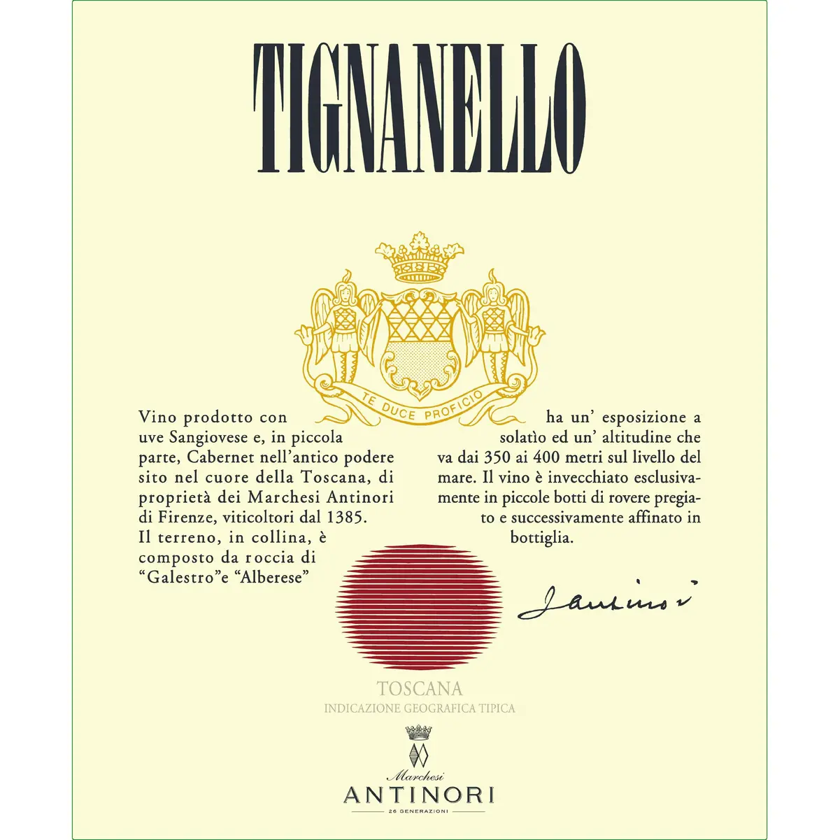- O histórico brasão da família Antinori, incorporado no rótulo, adiciona um toque pessoal à produção.