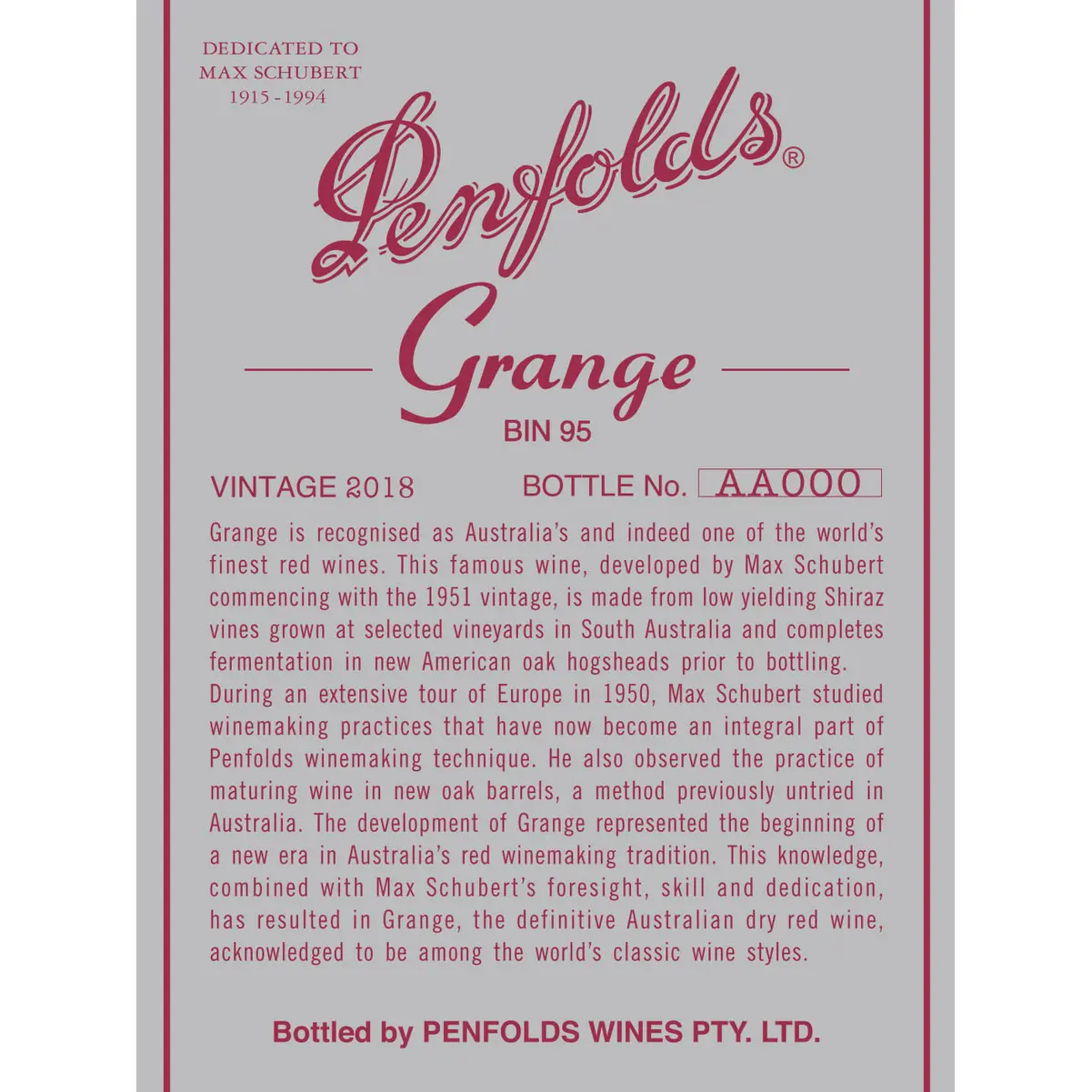 Prêmios Notáveis: O Grange recebeu inúmeros prêmios, incluindo o título de Melhor Syrah do Ano de 2021 pela FINE Wine Magazine para a safra de 2016, bem como a distinção de 'Australian Wine of the Year' em 2019 para a safra de 2015.