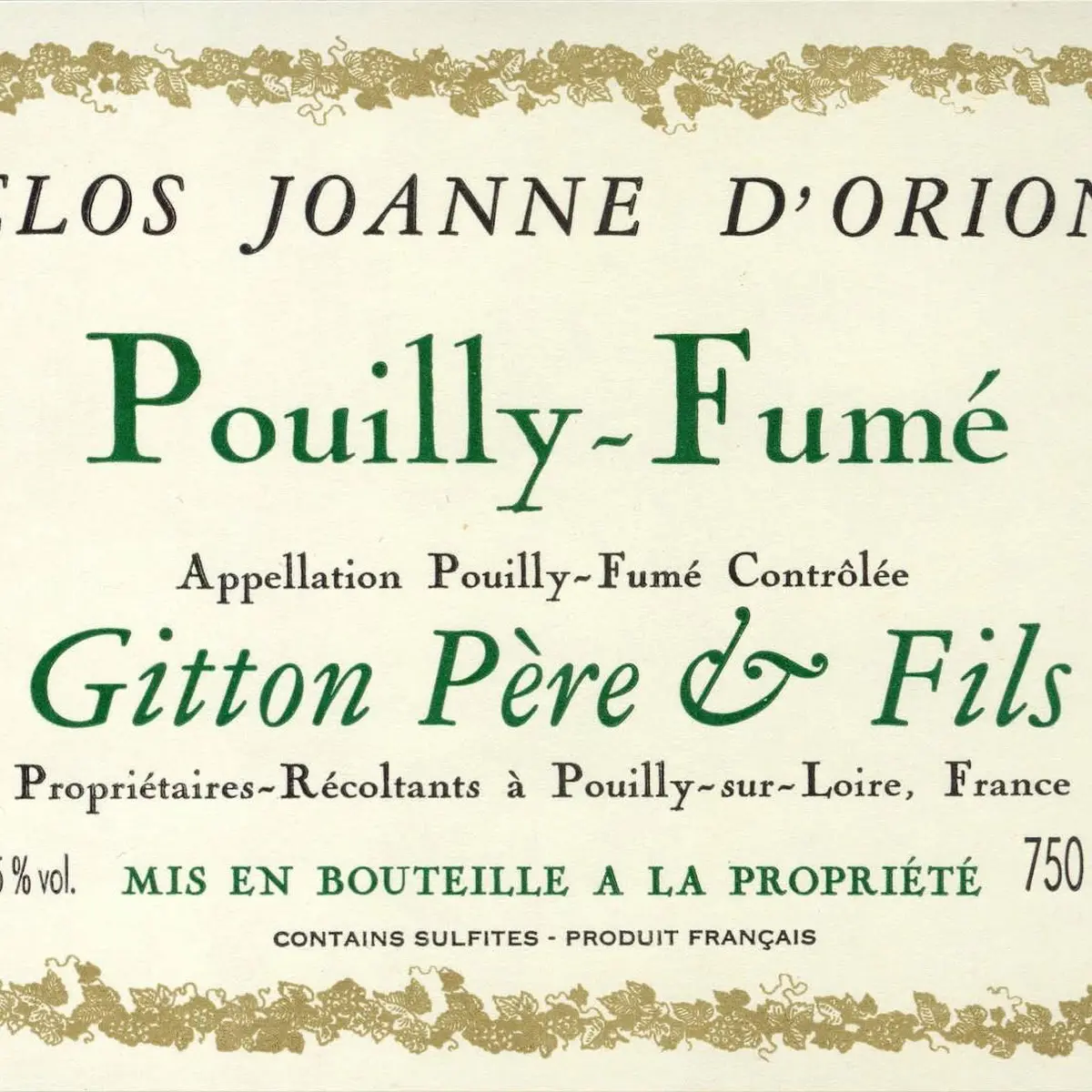 O Pouilly Fumé Clos Joanne d’Orion 2021 é um vinho branco produzido pelo produtor Pascal Gitton.