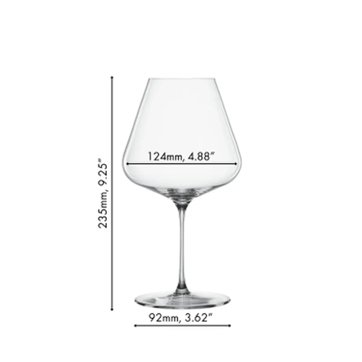 O Spiegelau Definição Vidro Borgonha realça vinhos tintos leves. Com 960,0 ccm de volume e 235,0 mm de altura, é feito à máquina com cristal. Sua forma tulipa captura aromas, destaca frutas, suaviza acidez e oferece leveza e equilíbrio. Seguro para lava-louças.